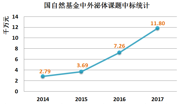 再看看近三年外泌体领域的中标课题经费数额增长趋势↓↓