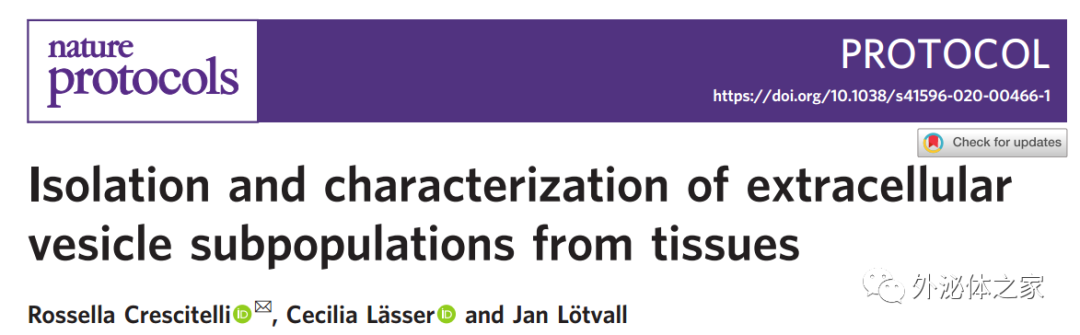 Nature Protocols:组织中细胞外囊泡亚群的分离和鉴定
