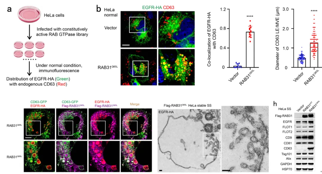 图1 RAB31Q65L驱动EGFR进入MVEs形成ILVs和外泌体